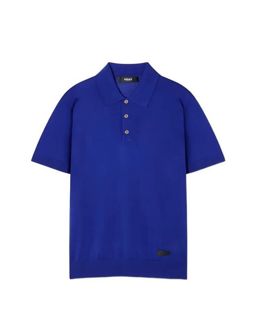 ブルー ショートスリーブ リブ編みの裾 ボタン留め ロゴパッチ Size: 44. Gender: Male. Material:シルク/コットン. カラー: ブルー