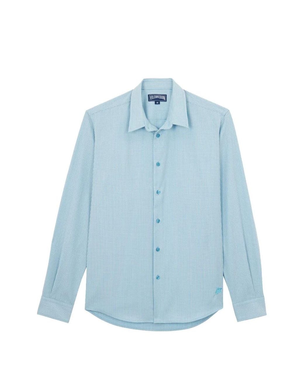 トパーズ ボタン留め ロゴ刺しゅう ロングスリーブ リラックスフィット ストライプ Size: L. Gender: Unisex. Material:ウール/ポリアミド. カラー: ブルー