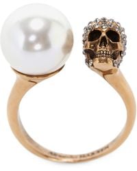 McQueen Men's Black Swarovski Crystal Snake And Skull Ring