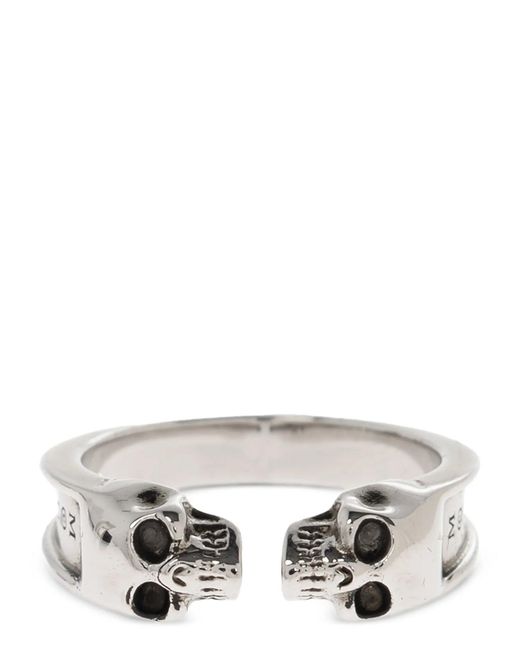 Men's Gray 'Thin Twin Skull' Ring