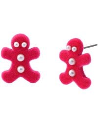 Go to Macy'sFestive coordinating mismatched stud earrings featuring playful gingerbread with charming ensembles. Color: pink