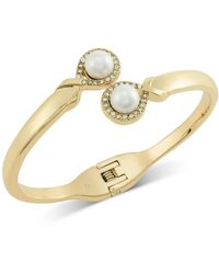 Go to Macy'sEmbellished at each end with both crystals and imitation pearls, this Charter Club bypass bangle just became your favorite bracelet. Color: white