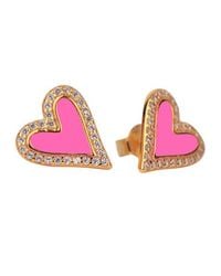 Go to NordstromThe cutest little heart shaped stud earrings with enamel center and zircon stones surrounding. Materials: Sterling Silver plated in 18k yellow gold and Colorful Enamel hoop earrings with Zircon stone. Hinge opening. For pierced ears. Color: pink