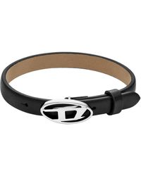 Go to Macy'sDiesel's stackable bracelet features silver leather and a button stud closure. Leather. Color: white