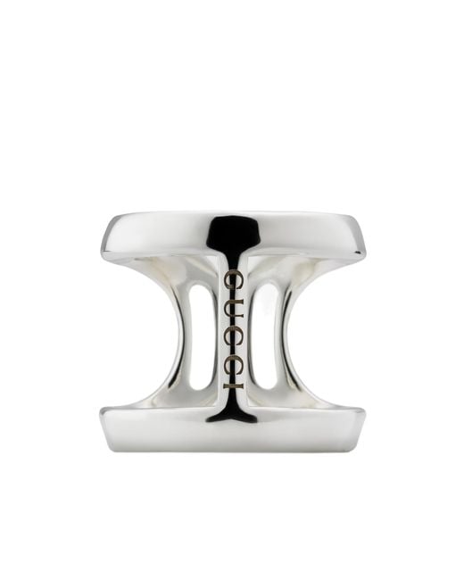 The new Gucci Staffa line is a modern reinterpretation of the House s equestrian archives taking inspiration from the stirrup Soft chain necklaces and cuff bracelets feature the motif as a pendant and design detail It also introduces a contemporary silhouette on rings and earrings 925 sterling silver Staffa Gucci engraving Weight 0 34oz approximately Made in Italy Gucci guarantees internally and within its supply chain respect for standards of Social Environmental Responsibility in line with its sustainability strategy Color: white