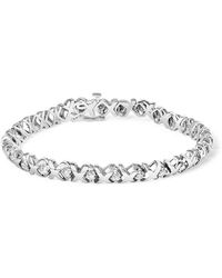 Haus of Brilliance Women's Blue 16.0 Cttw Oval Topaz And Diamond Accent Tennis X Link Bracelet