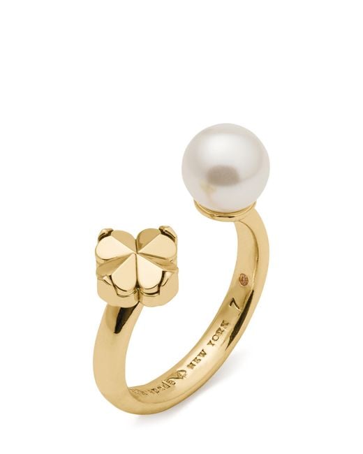 - Spade Flower Pearl Ring Ring, Brass/Cubic Zirconia/Glass