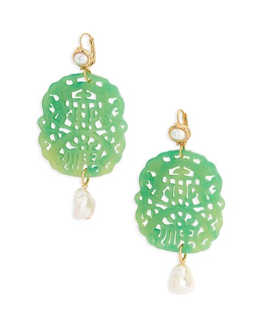 Women's Green Carved Stone Faux Pearl Drop Earrings