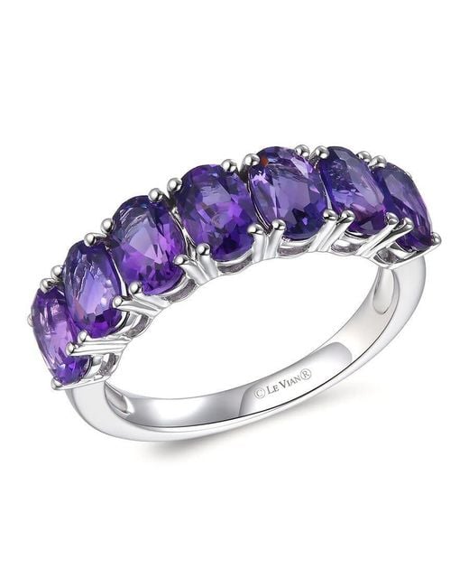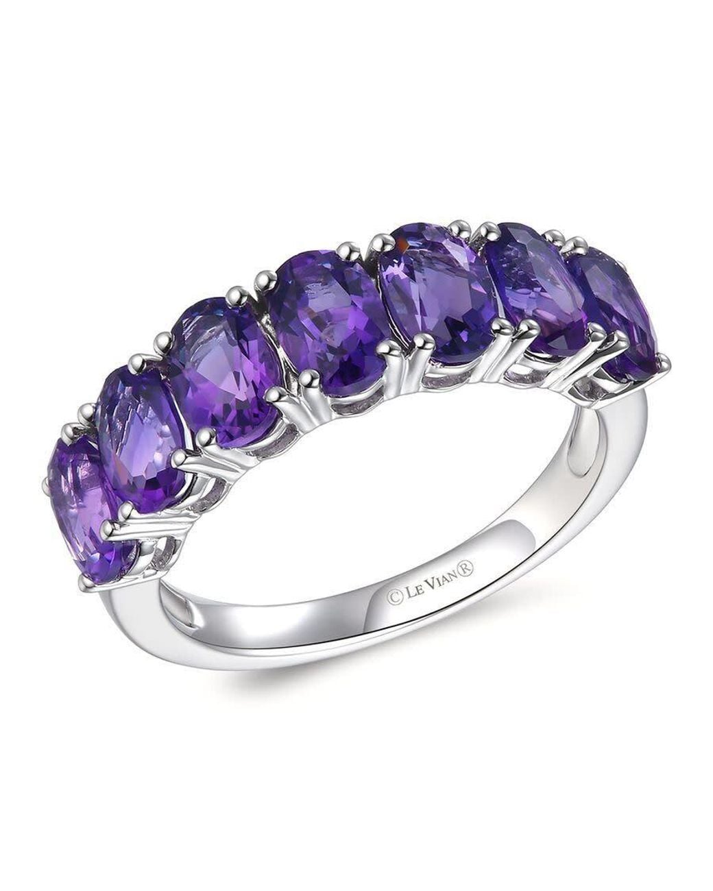 Le Vian Ring featuring set in 14K Vanilla Gold Le Vian Ladies Rings. Amethyst series. SKU: TSCI 10. Barcode: 191247830021. Color: White. Metal Type: White Gold. Metal Stamp: 14k. Metal Weight: 2.565g. Gem stone type: Amethyst. Stone weight: 2.8ct. Number of stones: 7. Stone shape: Oval. Stone color: Purple. Ring style: Band. Le Vian Ladies Amethyst Rings set in 14K Vanilla Gold.