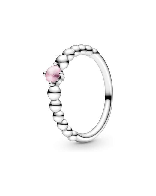 Like fluffy fairy floss or a flock of flamingos All that you are and all you love captured in color. Inspired by the beaded designs of Purely Pandora this ring is hand-finished in sterling silver and features a claw-set buff top-cut petal pink man-made crystal. Wear it to define and redefine your style by choosing colors that express who you are. Style them by creating stacks on a single finger or wear them spread across both hands in tonal colors or simply those that hold great meaning for you. Color: metallic