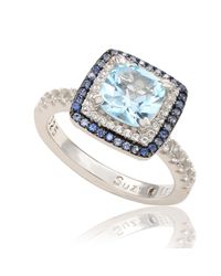 Suzy Levian Women's Metallic Sterling Amethyst Cushion Cut And Sapphire Accent Ring