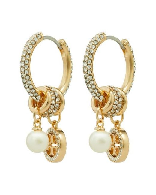 Women's Metallic Icon Pavé Hoop Charm Earrings