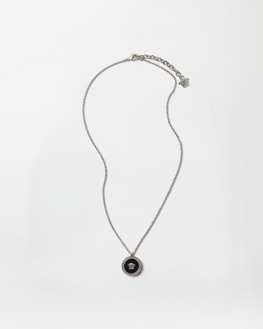 Ce collier chaîne est paré de détails en émail et d'une Medusa centrale entourée de gravures Greca. Tous les bijoux Versace sont garantis sans nickel ni plomb. Tous les matériaux sont hypoallergéniques.