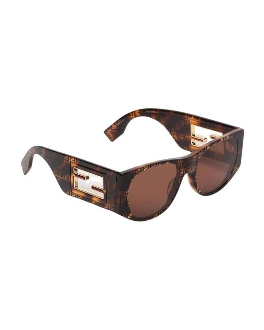 Fendi 0360S Zonnebrillen combineren de kenmerkende FF-logo details met heldere, beschermende lenzen voor een gepolijste, alledaagse look. Belangrijkste kenmerken: Bruin | Uitzonderlijke visuele helderheid | Beschermende lenzen | FF-logo versiering | Unieke frame versieringen Kleur: bruin