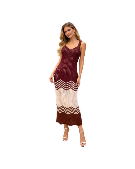Kleedjes ,Veelkleurig ,Chevron-Detail Gehaakte Midi Jurk - Rood