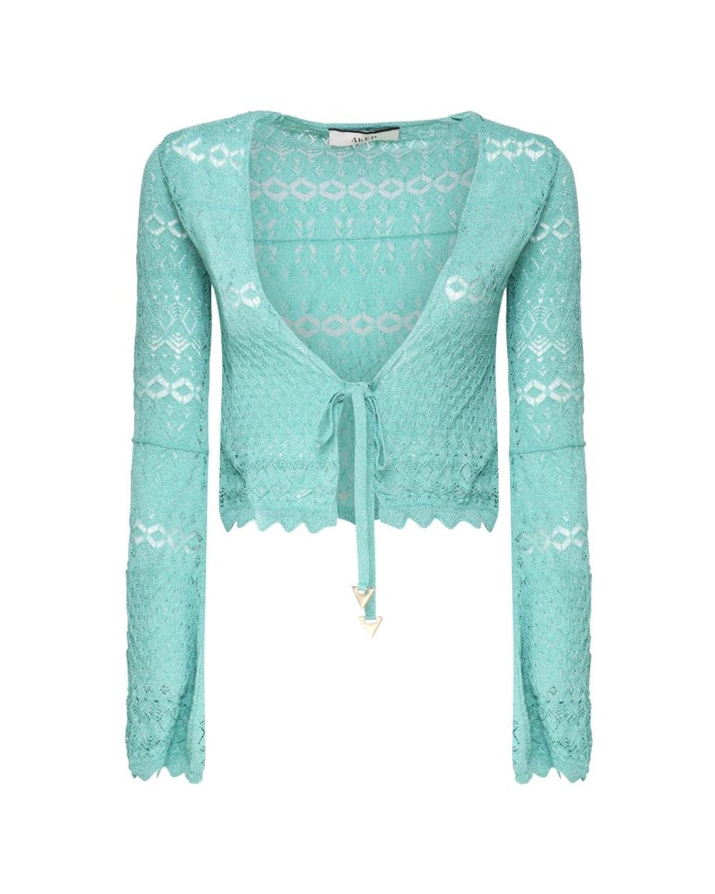 - Truien & Vesten ,Blauw ,Polyester Gehaakte Kant V-Hals Aqua Trui