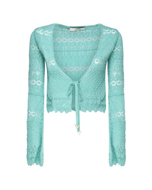 Truien & Vesten ,Blauw ,Polyester Gehaakte Kant V-Hals Aqua Trui voor dames