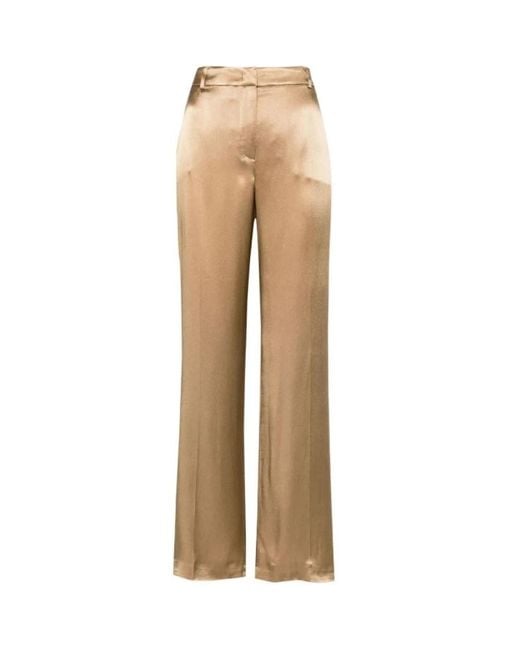 Profiteer van de beste deals! De Alberta Ferretti Flare Trousers in licht satijn bieden een elegant uitlopend silhouet met een lange, getailleerde lijn. Ontworpen voor verfijnde gelegenheden, combineren ze een geperste vouw en blinde sluiting voor een gepolijste afwerking. Belangrijkste kenmerken: Beige | Poeder | Licht satijn | Twee schuine steekzakken | Blinde sluiting aan de voorkant met haak, knopen en ritssluiting | Uitlopend silhouet | Geperste vouw | Lange lengte | Afmetingen & pasvorm: Uitlopende pasvorm | Rechte snit | Lange lengte Kleur: naturel