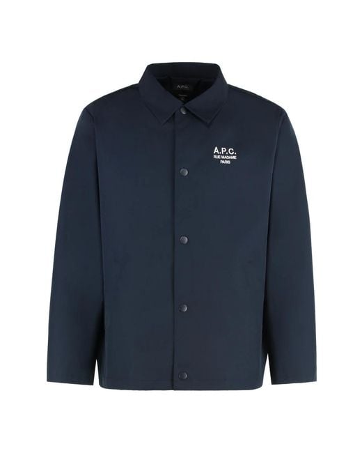 De A.p.c. Regis Jacket is een lichtgewicht overshirt ontworpen voor dagelijkse laagjes. Het heeft een klassieke kraag en een subtiel geborduurd logo op de borst voor een strakke, veelzijdige look met lichte bescherming tegen de elementen. Belangrijkste kenmerken: Blauw | Polyester-katoenmix | Lichtgewicht stof | Lichte bescherming tegen de elementen | Drukknoopsluiting aan de voorkant | Twee zijzakken | Binnenzak | Trekkoord in de zoom | Klassieke kraag | Geborduurd logo op de borst | Rechte snit | Samenstelling & onderhoud: Buitenstof: 60% Polyester, 40% Katoen | Voering: 100% Polyester | Uitsluitend chemisch reinigen.