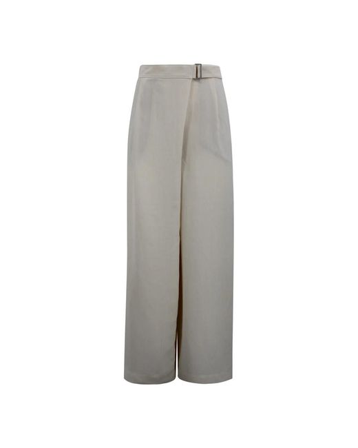 De Brunello Cucinelli Sartorial Wrap Trousers combineren een vloeiende viscose-linnen keperstof met een wikkel silhouet en D-ring riem voor een verfijnde, veelzijdige broek, ideaal voor zowel casual als geklede looks. Belangrijkste kenmerken: Ivoor | Viscose en linnen | Verstelbare taille met D-ring riem | Paspelzak | Minimaal, eigentijds design | Wikkel silhouet met plooien aan de voorkant | Wijde pijpen | Glanzend monili detail op de achterste riemlus | Afmetingen en pasvorm: Regular fit | Comfortabele pasvorm | Wikkel silhouet met wijde pijpen | Samenstelling en verzorging: Viscose | Linnen | Uitsluitend chemisch reinigen. Niet bleken. Niet in de droogtrommel. Strijken op lage temperatuur. Kleur: grijs