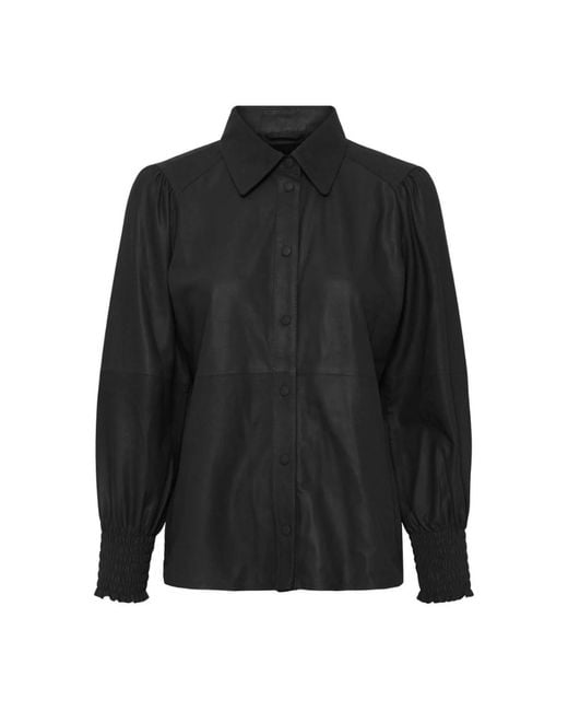 - Overhemden ,Zwart ,Leer Zwarte Blouse 3/4 Mouw