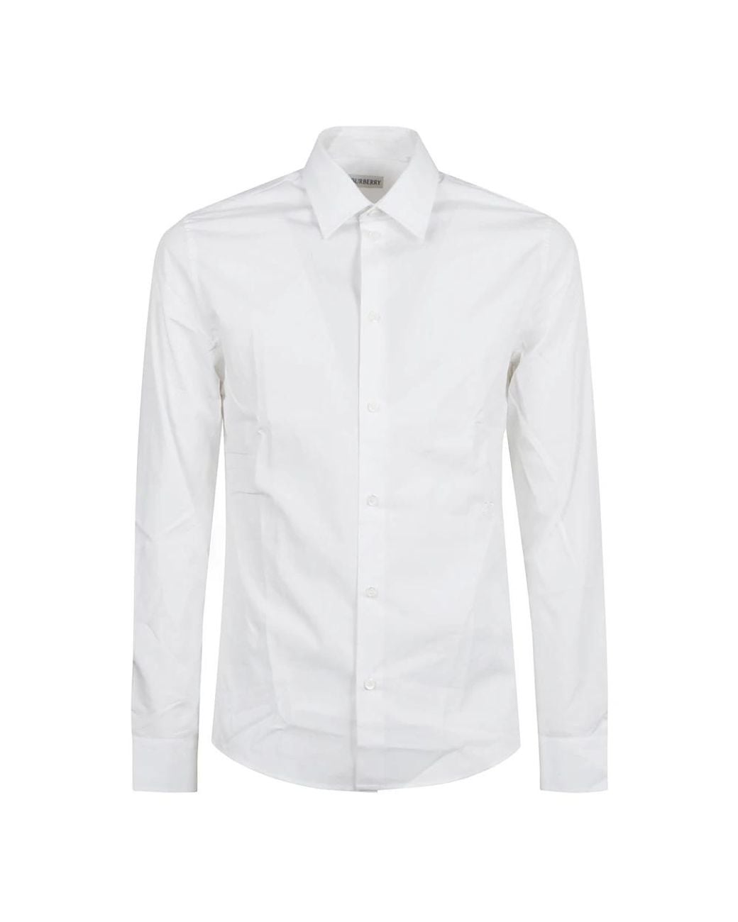 Profiteer van de beste deals! Burberry overhemd gemaakt van katoenpoplin met ton-sur-ton Equestrian Knight-borduursel aan de voorkant. Ideaal voor formele en smart-casual gelegenheden. Belangrijkste kenmerken: Wit | Katoenpoplin | Knoopsluiting | Afgeronde manchetten met knoop | Achterpas | Puntige kraag | Ton-sur-ton Equestrian Knight-borduursel aan de voorkant | Samenstelling & verzorging: Katoenpoplin
