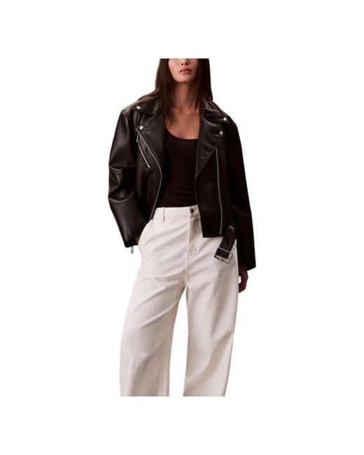 Profiteer van de beste deals! Upgrade je casual of urban outfit met het iconische Calvin Klein Jeans Faux Leather Moto JA Lv 044C532G jack. Gemaakt van 100% polyurethaan, heeft deze biker-stijl jack metallic details, een asymmetrische ritssluiting en een verstelbare riem aan de zoom. De iets verkorte snit en moderne pasvorm maken het een must-have voor de tussenseizoenen, met een gedurfd en toch verfijnd tintje aan je garderobe. Kleur: zwart