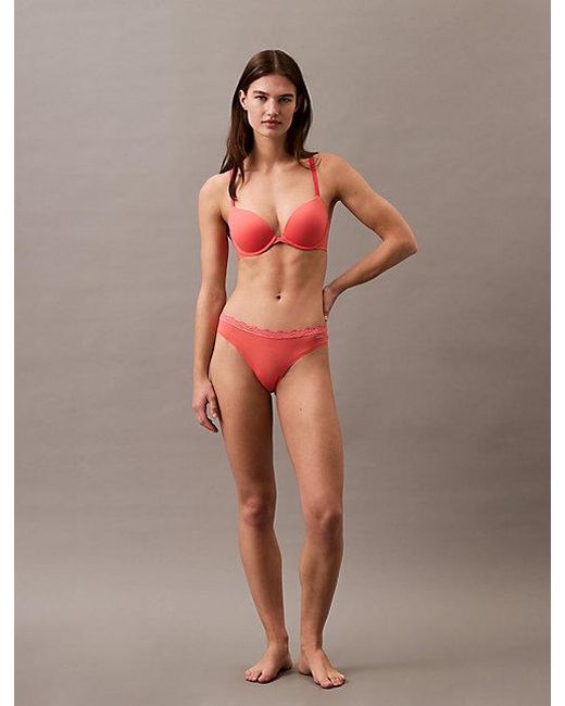 Ervaar het zachte en lichtgewicht gevoel van MICRO STRETCH ondergoed, afgewerkt met mooie kanten accenten voor een delicate touch.<br><br>Highlights<br><br>• jersey microvezel<br>• geschulpte stretch kanten tailleband<br>• no-show vlakke randafwerking <br>• print met Calvin Klein-logo op de heup<br><br>Model en pasvorm<br><br>• lage taille<br><br>Samenstelling en verzorging<br><br>85% polyamide, 15% elastaan<br>fijne was<br><br>land van herkomst: Bangladesh<br><br>Slips mogen alleen geruild worden indien ongeopend in de originele verpakking, in ongedragen toestand met alle labels er nog aan. Kleur: meerkleurig
