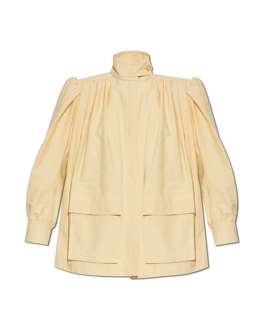 Profiteer van de beste deals! De opvallende Oversized JAS MET EEN Opstaande Kraag van Chloé belichaamt moderne elegantie in een Parijse stijl. De dominante Gele kleur accentueert het verfijnde karakter ervan en geeft het stuk een uniek gevoel van energie en frisheid. De hoge opstaande kraag, gesloten met knopen en een verborgen rits onder een overslag, benadrukt subtiel een minimalistische benadering van details. Brede, lange mouwen met manchetten en geplooid stof bij de schouders creëren een intrigerend volume, terwijl de achterkant van de jas opvalt met extra plooien bij het juk. Twee ruime, opgestikte zakken met eenvoudige kleppen bieden zowel een functionele als decoratieve accent. De jas is gemaakt van een glad, mat stof met een textuur die doet denken aan katoen, wat zowel duurzaamheid als een voortreffelijke afwerking garandeert. Waarom ZOU U DIT Product Moeten Kiezen? * Een unieke interpretatie van Parijse mode door Chloé. * Tijdloze oversized silhouet zorgt voor comfort en bewegingsvrijheid. * Geplooide details en designaccenten benadrukken de uniekheid van het stuk. * Levendige kleur en luxueuze stof laten u opvallen met elegantie. Modelmaten Hoogte: 177 cm Buste: 83 cm Taille: 61 cm Heupen: 89 cm Model draagt maat: 36 Kleur: naturel