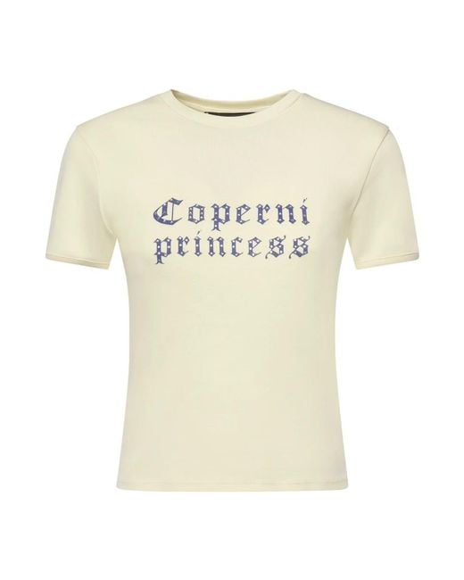 De Coperni Princess T-shirt is een nauwsluitend T-shirt gemaakt van puur katoen met een opvallende print op de voorkant. Het is ontworpen voor dagelijks gebruik wanneer je een strakke, statement-makende look wilt. Belangrijkste kenmerken: Geel | Katoen | Ronde hals | Korte mouwen | Print op de voorkant | Afmetingen & pasvorm: Nauwsluitende pasvorm | Getoonde maat: S | Samenstelling & onderhoud: 100% Katoen Kleur: naturel