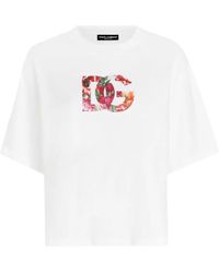 Dolce & Gabbana Blauw Katoenen T-Shirt Met Metalen Label voor dames