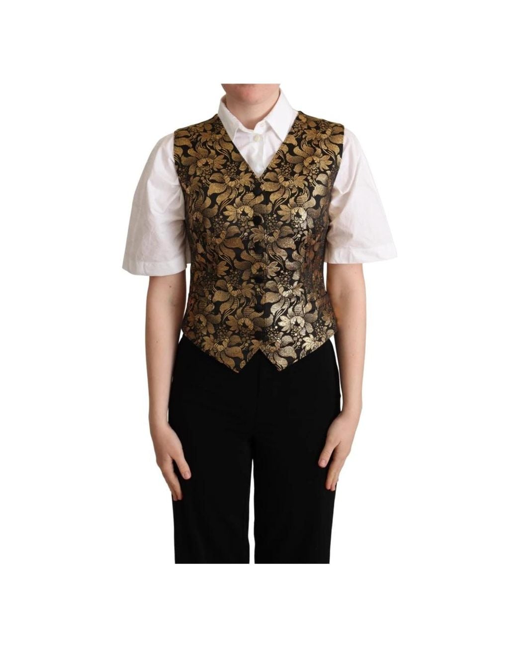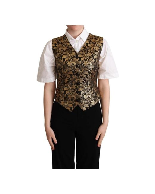Jassen ,Veelkleurig ,Katoen Zwart Goud Jacquard Zijden Vest voor dames