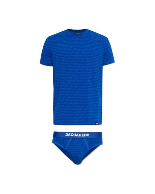 Nachtkleding ,Blauw ,Katoen Set: T-Shirt En Slip voor heren