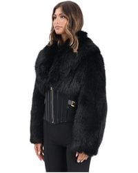 Elisabetta Franchi Aviator Stijl Imitatiebont Jas in het zwart voor dames