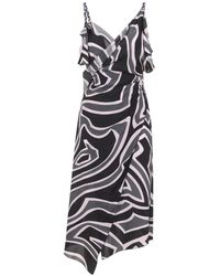 Ga naar MiintoPucci Abito in Lycra con Stampa Iride is een midi-jurk die een figuurvolgend silhouet combineert met de iconische archiefachtige iriserende print van het merk. Het biedt stretch en comfort dankzij een technische Lycra-stof,