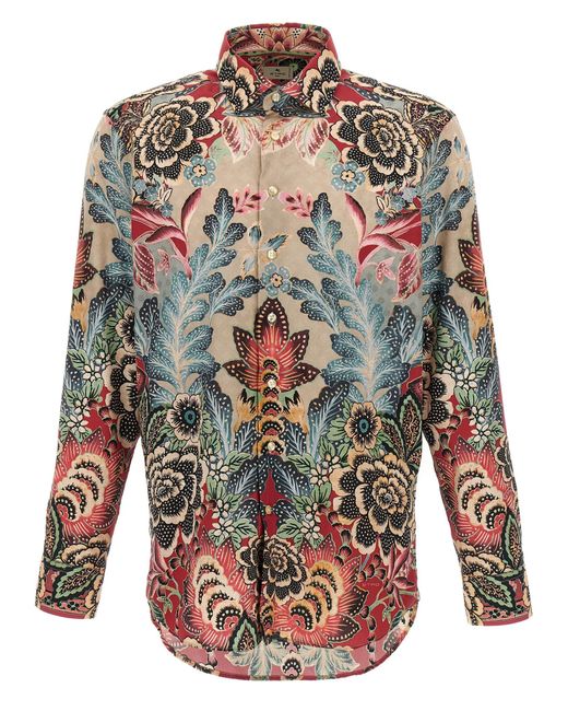 Gedrukt katoenen shirt met bloemen en all-over gebladerte, voorste knopafsluiting, lange manchetmouwen. Etro. Bloem- en gebladertehemd. Roma Fit - kraaggrootte. Kleur: meerkleurig