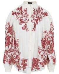 Etro Overhemden ,Wit ,Witte Zijden Blouse Met Opstaande Kraag voor dames