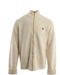 Ga naar MiintoProfiteer van de beste deals! Upgrade je stijl met de Fred Perry Heren Cardigan in Ivory. Gemaakt van zuivere gekamde katoen met een getextureerde afwerking, deze stijlvolle kledingstuk heeft een ritssluiting, logo-trekker, geribbelde
