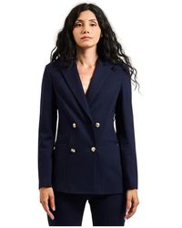 GAUDI Witte Linnen Blazer Met Shawl Kraag in het blauw voor dames