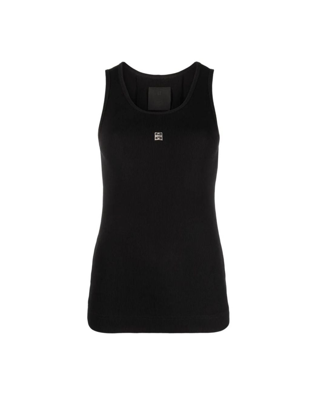 Profiteer van de beste deals! Upgrade je stijl met deze Givenchy mouwloze top, gemaakt van premium materialen voor een veelzijdige look. Belangrijkste kenmerken: Zwart | Katoen | Ronde hals | 4G metalen stuk op de voorkant | Mouwloos | Afmetingen en pasvorm: Slim fit | Samenstelling en onderhoud: 98% katoen | 2% elastaan | Machinewas koud, droogtrommel laag.