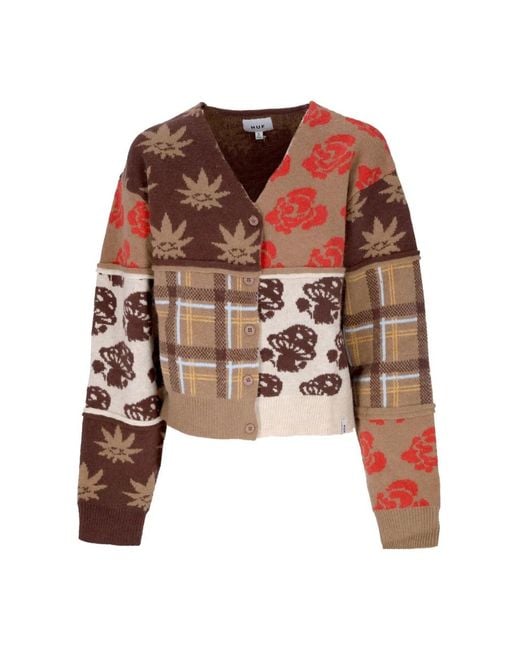 Truien & Vesten ,Veelkleurig ,Polyester Nature Patchwork V-Neck Cardigan Bruin voor dames