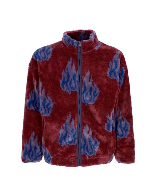 Hoodies & Sweatvesten ,Veelkleurig ,Polyester Sherpa Fleece Rits Jas Hoge Hals in het rood voor heren