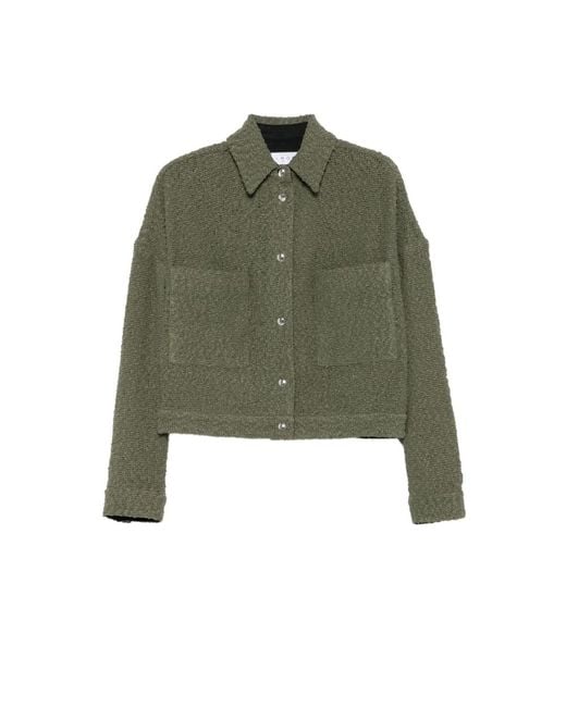 - Truien & Vesten ,Groen ,Groene Geweven Jas Met Kraag