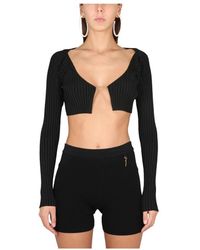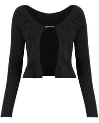 Jacquemus Truien & Vesten ,Zwart ,Polyester Pralu Ribgebreide Top voor dames