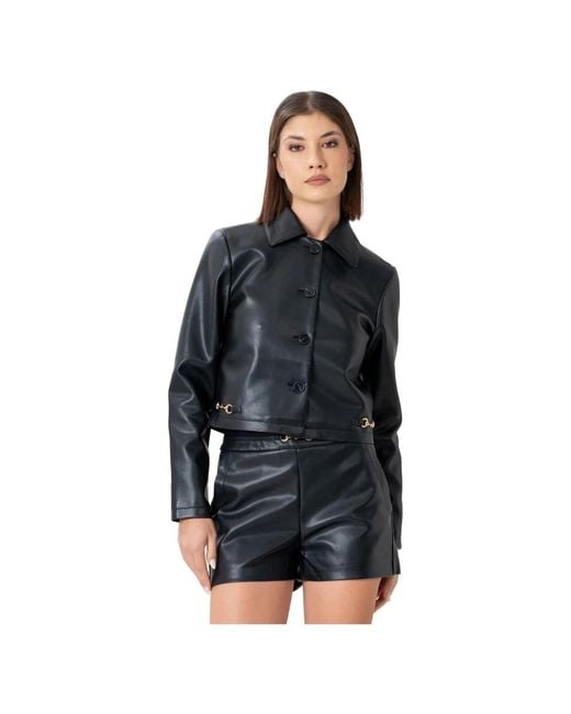 Jassen ,Zwart ,Leer Kort Leren Look Jasje Met Kraag voor dames
