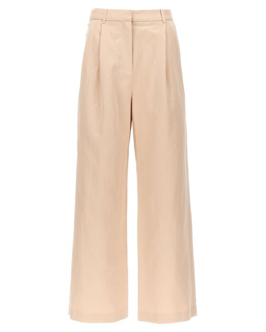 Idai' katoenen en linnen blendbroeken, breedbeen met plooien, zakken, rits, haak en knoopafsluiting. Loulou Studio. Idai' broek. Trouw aan maat fit. Kleur: naturel