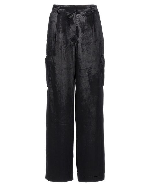 Luli' Velvet Cargo-broek met haak-en-oog zip- en knoopafsluiting, zakken. Julian Sustainable: dit product is gemaakt in OEKO-Tex-materialen. Loulou Studio. Luli 'broek. Trouw aan maat fit. Kleur: zwart