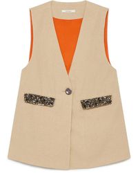 Ga naar MiintoMaliparmi Getailleerd Gilet in Wol is een gestructureerd gilet in een viscose-wolmix, ontworpen voor verfijnde laagjes en getailleerde styling. Het biedt een slank, getailleerd silhouet, ideaal voor smart-casual en formele outfits. Belangrijkste kenmerken: