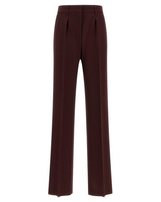Cannes'-broek van gabardine van zuivere wol, knijptang, uitgerekte plooi, rechte pijpen, hoge taille, sluiting met ritssluiting en knoop aan de voorkant, zakken, logolabel aan de achterkant. MAX MARA. 'Cannes'-broek. Past qua maat. Kleur: paars