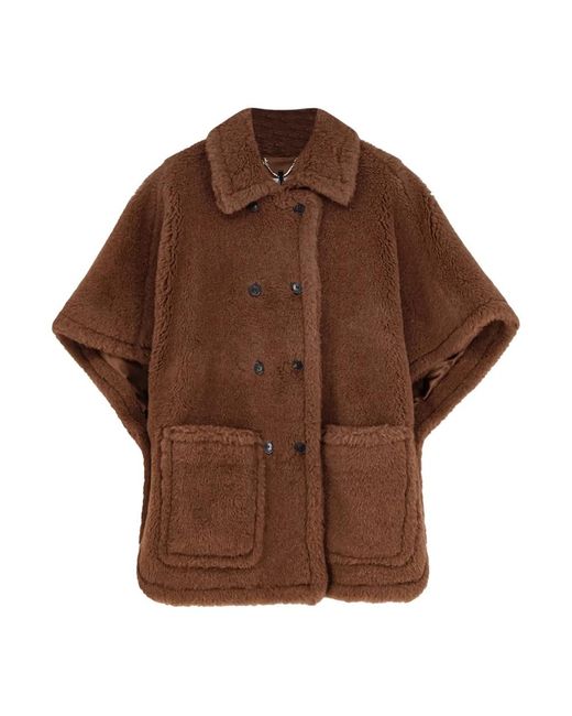 Profiteer van de beste deals! Max Mara Shearling Jacket in een double-breasted silhouet, vervaardigd uit een zachte alpaca-cashmere-zijde blend voor verfijnde warmte en textuur. Belangrijkste kenmerken: Bruin | Oro Verde Marrone | Alpaca | Double-breasted sluiting | Knoopsluiting | Zijknopen | Logo voering | Gemaakt in Italië | Double-breasted silhouet | Knoopdetail aan de voorkant | Logo voering | Samenstelling & verzorging: 63% alpaca | 26% cashmere | 11% zijde